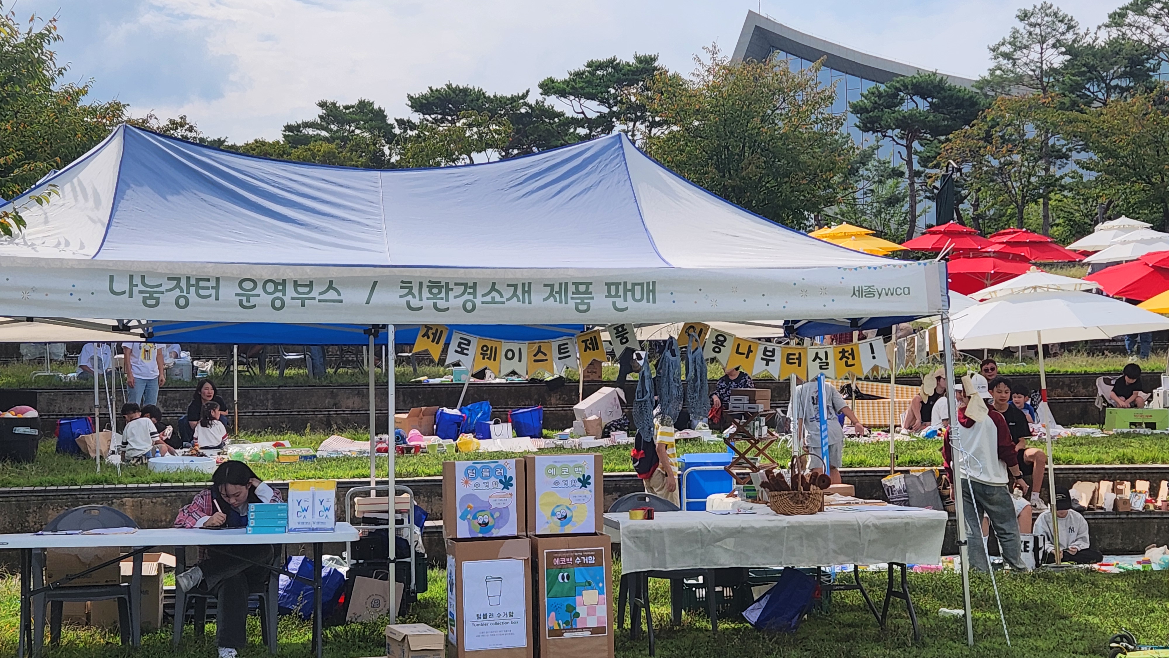 9월 27일, 세종 호수공원에서 자원순환의 날을 맞아 세종자원순환축제가 개최되었습니다.세종 YWCA도 나눔장터로 부스운영을 하면서 자연친화적인 화장품과 생활용품을 시민분들께 소개하고, 에코백과 텀블러를 수거하여 자원순환을 실천하고자 하였습니다,
